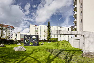 In den einundzwanzig Wohnungen in diesem Mehrfamilienhaus sanierten wir einen Grossteil der Küchen, alle Nasszellen und die Steigzonen. Ausserdem erhielt die Umgebung sowie der Spielplatz ein Refresh. Das Konzept dazu stammt aus unserer Feder, wir waren als bauleitende Firma vor Ort, begleiteten die termin- und kostengetreue Umsetzung.